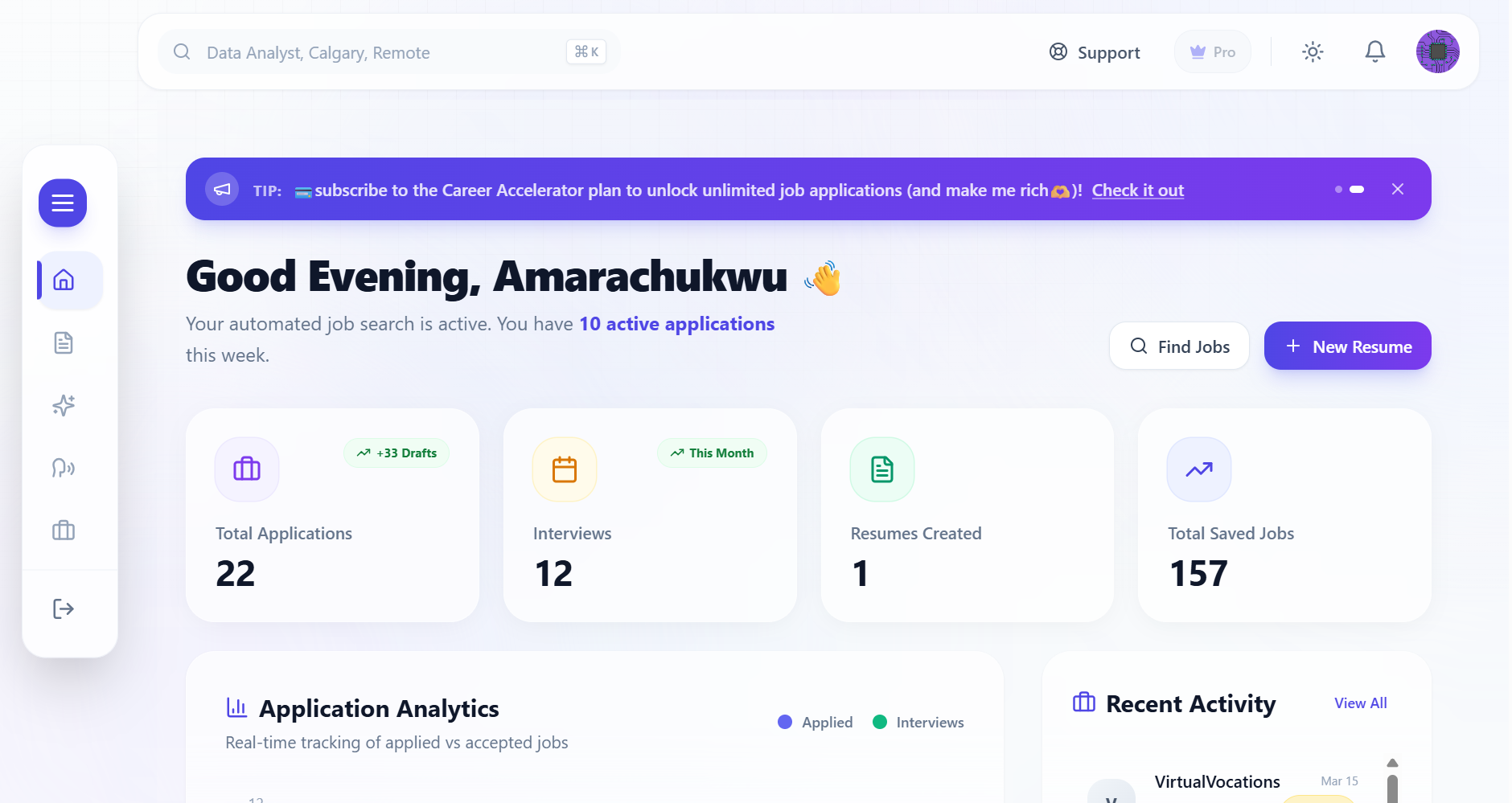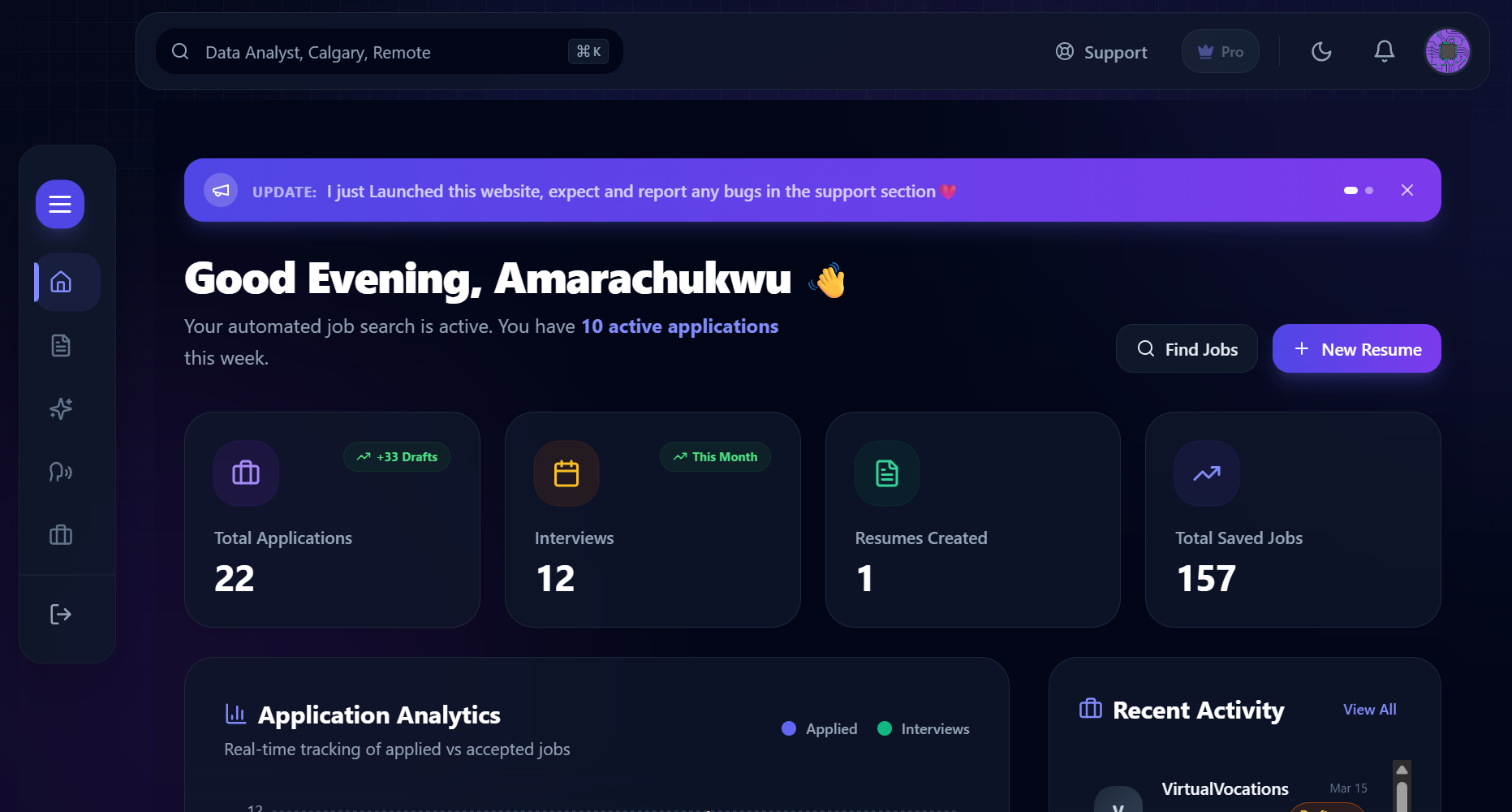 Resumify discovers relevant jobs, writes tailored cover letters, and auto-submits applications for you. Stop copy-pasting and start interviewing.